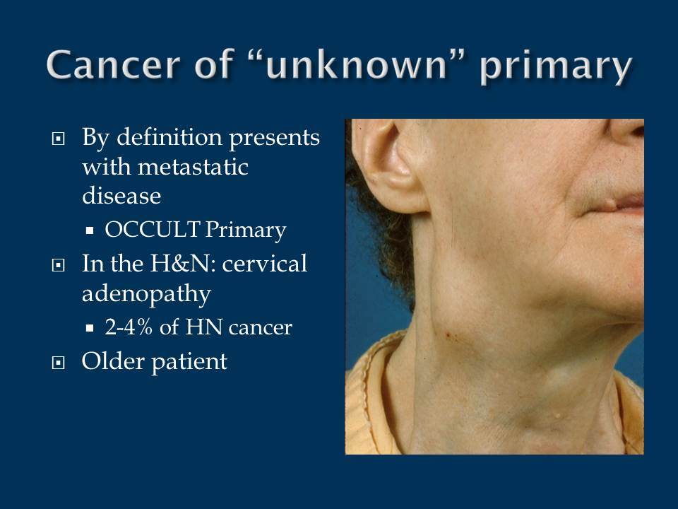 These areas are described below and labeled sometimes, cancerous squamous cells can be found in the lymph nodes of the upper neck when there is no evidence of cancer in other parts of the. If it's not the cancer type you're looking for, please explore the information about other types of head and neck cancers. These areas are described below and labeled sometimes, cancerous squamous cells can be found in the lymph nodes of the upper neck when there is no evidence of cancer in other parts of the. Cancer of unknown primary in the head and neck region occurs when the origin of the cancer is unknown, but is found to have spread to the lymph nodes in the neck.