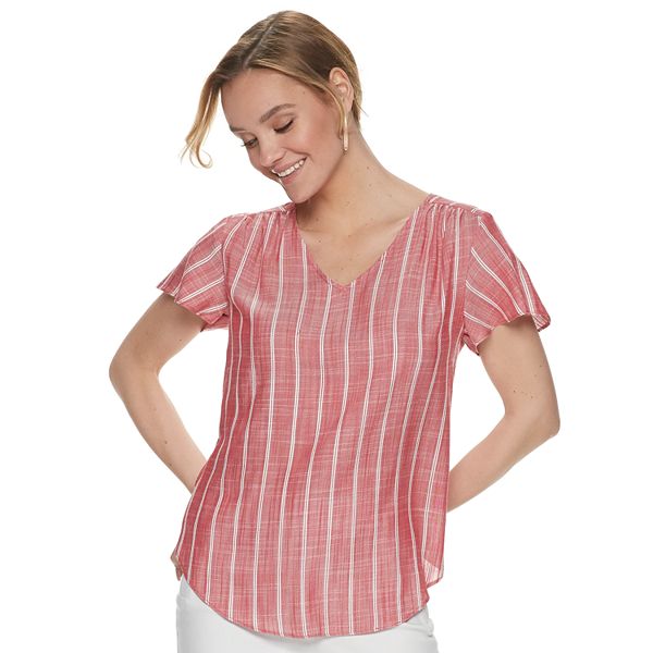 Look effortlessly cute in this customizable flutter sleeve top. A single design will let you stand out from the crowd and be elegantly billowing with the wind. American eagle sz medium gray blouse top flutter short sleeve beaded scoop necktop rated seller. Flutter sleeves and an easy fit make this top a match for cool comfort and effortless outfitting.