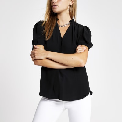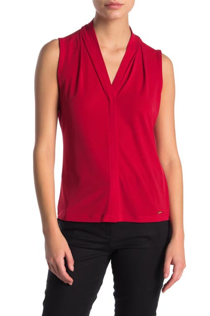 View V Neck Shell Top UK. With a notch neckline and a flowing shell cut it's a stylish piece, complete with a metallic top button fastening. Elevate your style in the bcbgmaxazria® top featuring a draped silhouette, a pintucked detail at shoulders, and a satin georgette fabrication.